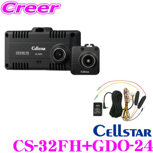 セルスター 前後2カメラ ドライブレコーダー+駐車監視電源コード CS-32FH + GDO-24 セット 200万画素IMX323 HDR フルHD 夜間補正機能 2.4インチ タッチパネル レーダー探知機対応 32GB microSDカード/リアカメラケーブル(9m)付属/日本製 3年保証