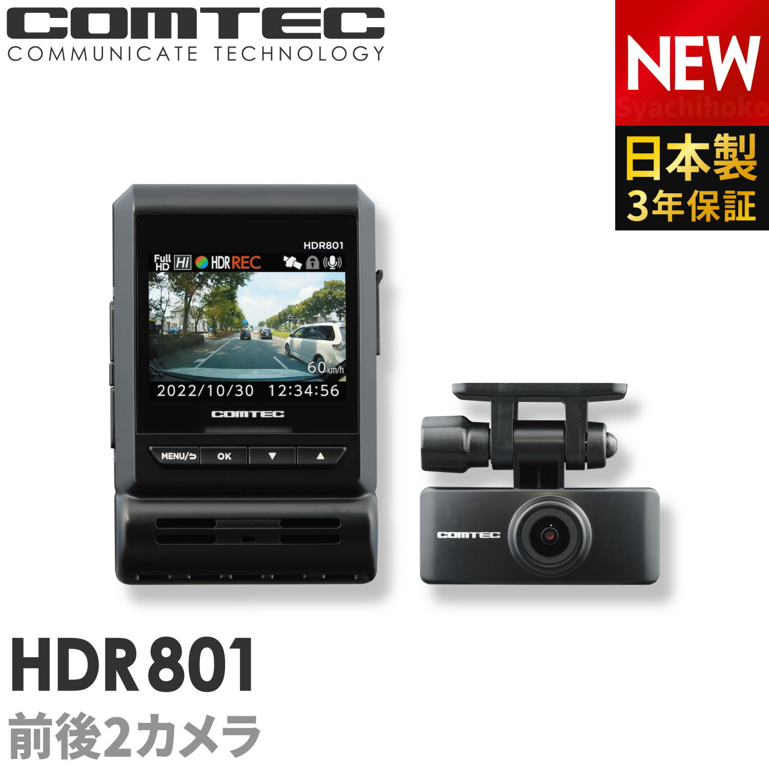 【2022年8月発売の新商品】ドライブレコーダー 前後2カメラ コムテック HDR801 日本製 3年保証 ノイズ対策済 フルHD高画質 常時 衝撃録画 GPS搭載 駐車監視対応 2.4インチ液晶 ドラレコ