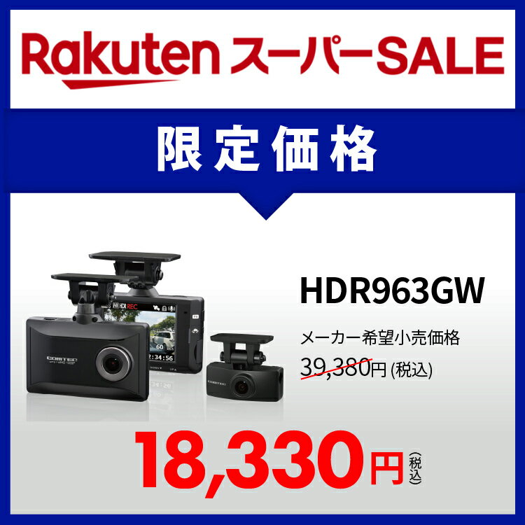 メーカー名 COMTEC コムテック 商品名 ドライブレコーダー HDR963GW 液晶サイズ 2.7インチ※撮った映像をその場で確認できます 画素数 フロントカメラ:200万画素 Full HD(フルHD 1920×1080) リヤカメラ:200万画素 Full HD(フルHD 1920×1080) GPS ○速度情報、位置情報の記録、表示。